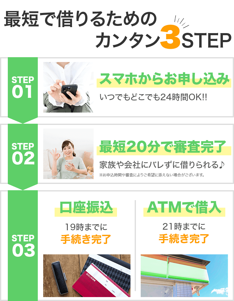 | 融資時間 契約後最短3分 | 融資時間 最短3分 | 融資時間 |